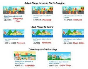 Niche has recently published their 2018 “Best Places” rankings, and it’s not surprising to find Pinehurst, Aberdeen, and even some of our less well-known communities ranked high in categories such as “Safest Places to Live in North Carolina” and “Best Places to Retire”.  Take a look: